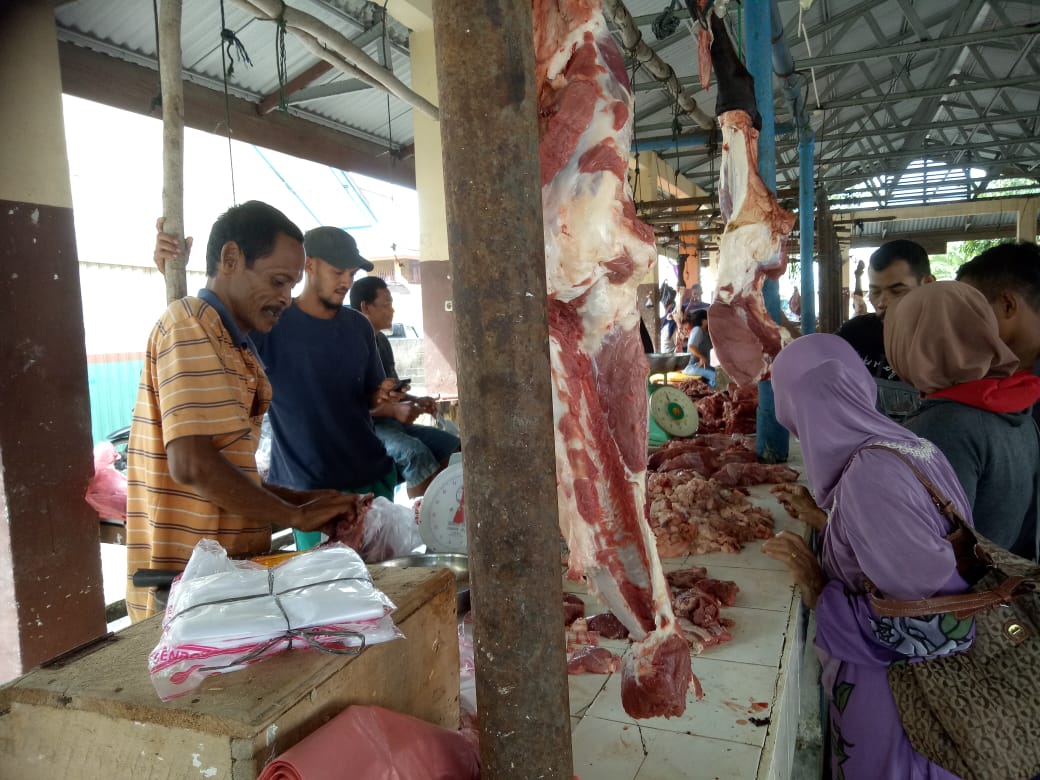 ‘Harga daging kami jual dengan harga 130.000 rupiah/kilogram. Minat beli masyarakat masih tinggi memenuhi kebutuhan daging,”ujar Yono