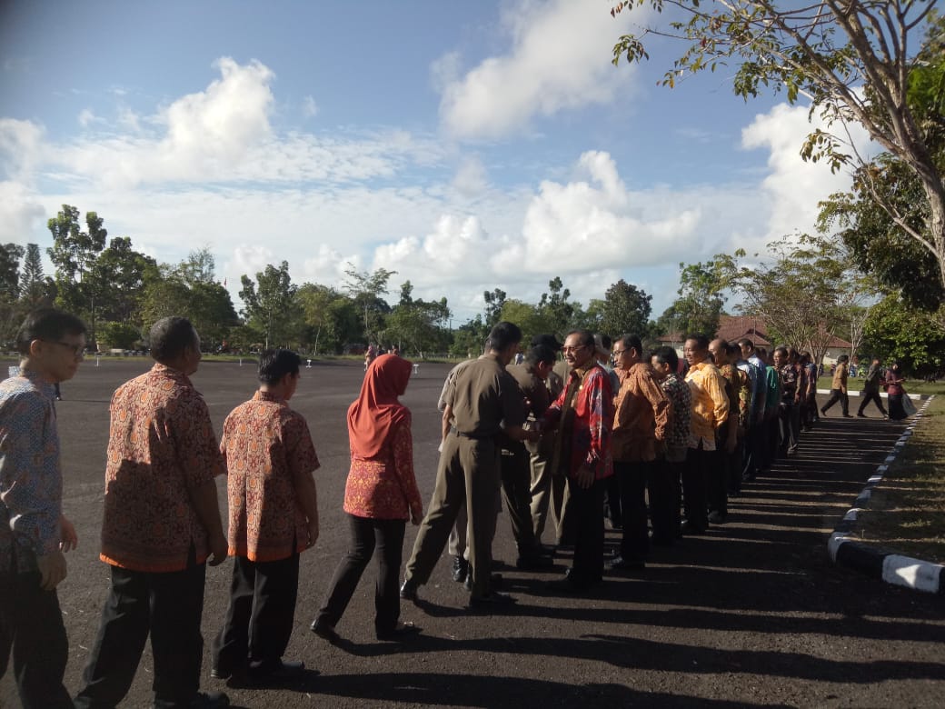 Muntok. Hari pertama masuk kerja Bupati Bangka Barat Drs H Parhan Ali MM beserta Sekda H. Yunan Helmi Asisten, Staff Ahli, Ka OPD melaksanakan ramah tamah dengan seluruh ASN dan pegawai di pemkab Bangka Barat.