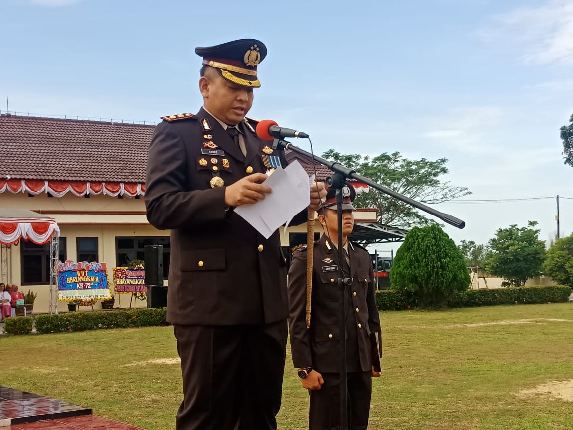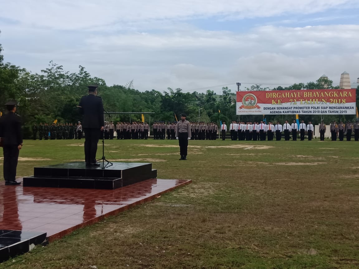 Upacara Hari Ulang Tahun (HUT) Bhayangkara ke – 72 Polres Bangka Barat, dua Perwira dan enambelas anggota di Jajaran Polres Bangka Barat mendapatkan penghargaan dari Kapolres Bangka Barat AKBP Firman Andreanto, S.H, S.IK, M,Si Selasa (2/6/2018).