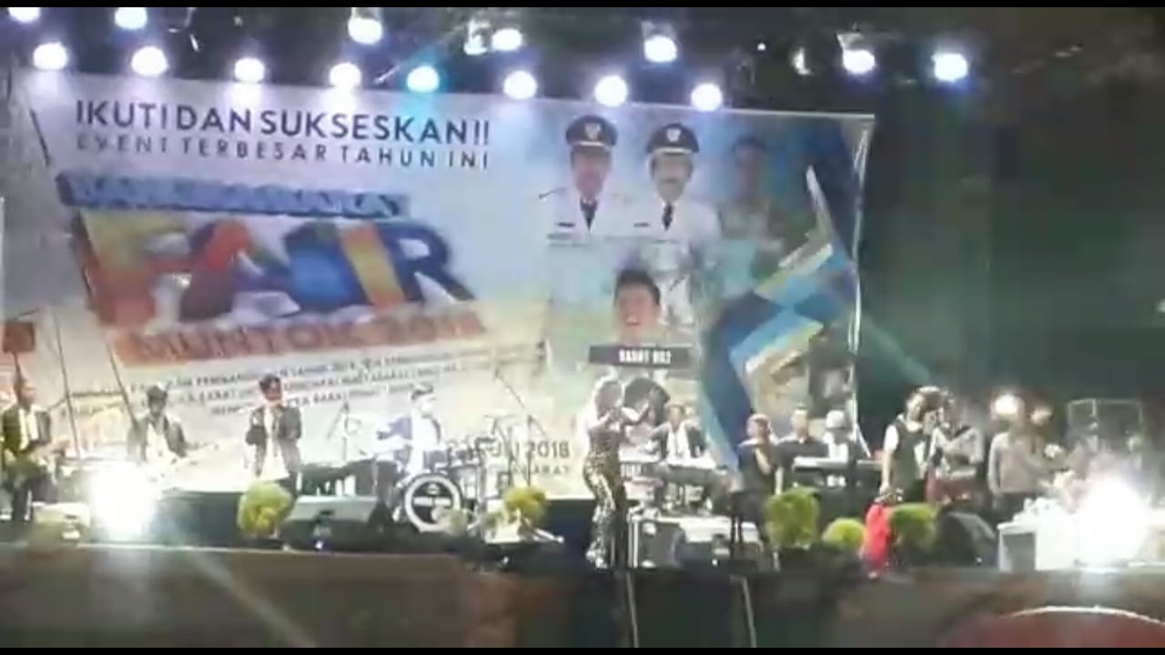 MUNTOK. Penyanyi dangdut pelantun “Dirijeck” Jenita Janet mampu membius penonton di “panggung megah ” Kapal Layar ” Bangka Barat Fair Muntok 2018 di Lapangan Atletik Pemkab Bangka Barat, Rabu ( 18/7/2018 ) malam.