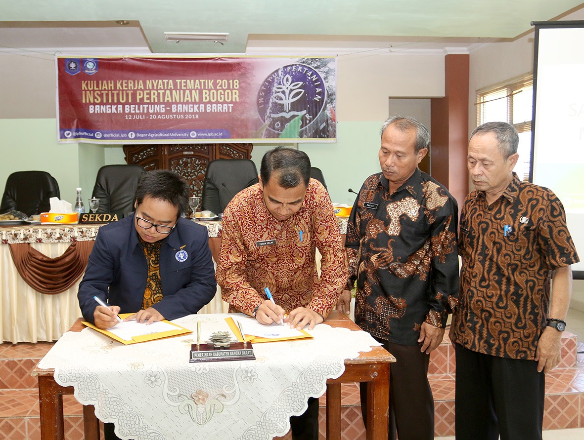 Muntok, Sebanyak 25 mahasiswa dari Institut Pertanian Bogor (IPB) melakukan kegiatan Kuliah Kerja Nyata Tematik di Kabupaten Bangka Barat selama 40 hari. Mereka melakukan kegiatannya di 4 Desa/Kelurahan diantaranya Kelurahan Kelapa Kecamatan Kelapa, Desa Kundi Kecamatan Simpangteritip, Desa Air Belo, dan Dusun Sukal Desa Belo Laut kecamatan Muntok. Para mahasiswa telah melakukan aktifitas KKN di masing-masing desa pada 12 Juli sampai dengan 20 agustus 2018 mendatang.