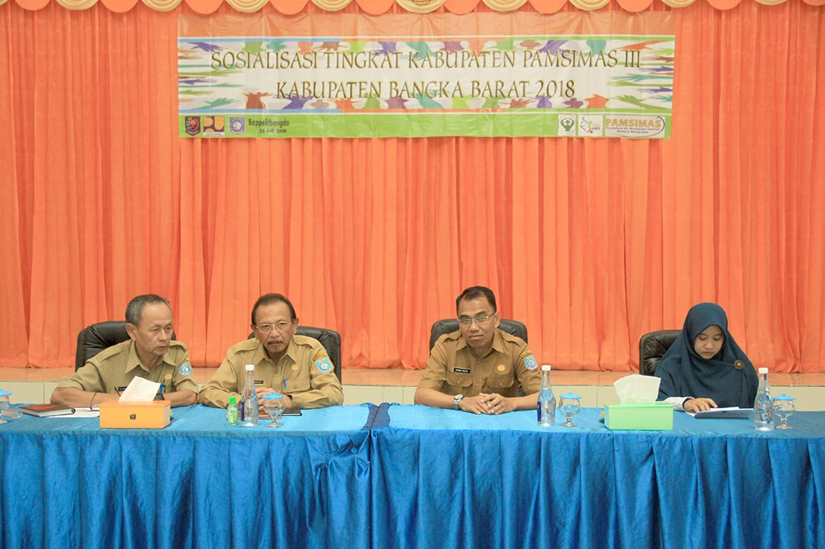 Muntok, Pemerintah Kabupaten Bangka Barat melalui Badan Perencanaan, Pembangunan, Penelitian dan pengembangan Daerah (BAPPELITBANGDA) Kabupaten Bangka Barat melaksanakan sosialisasi program Penyediaan Air Minum dan Sanitasi Berbasis Masyarakat (PAMSIMAS) se Kabupaten di gedung graha aparatur Pemkab Bangka Barat, senin (23/7).