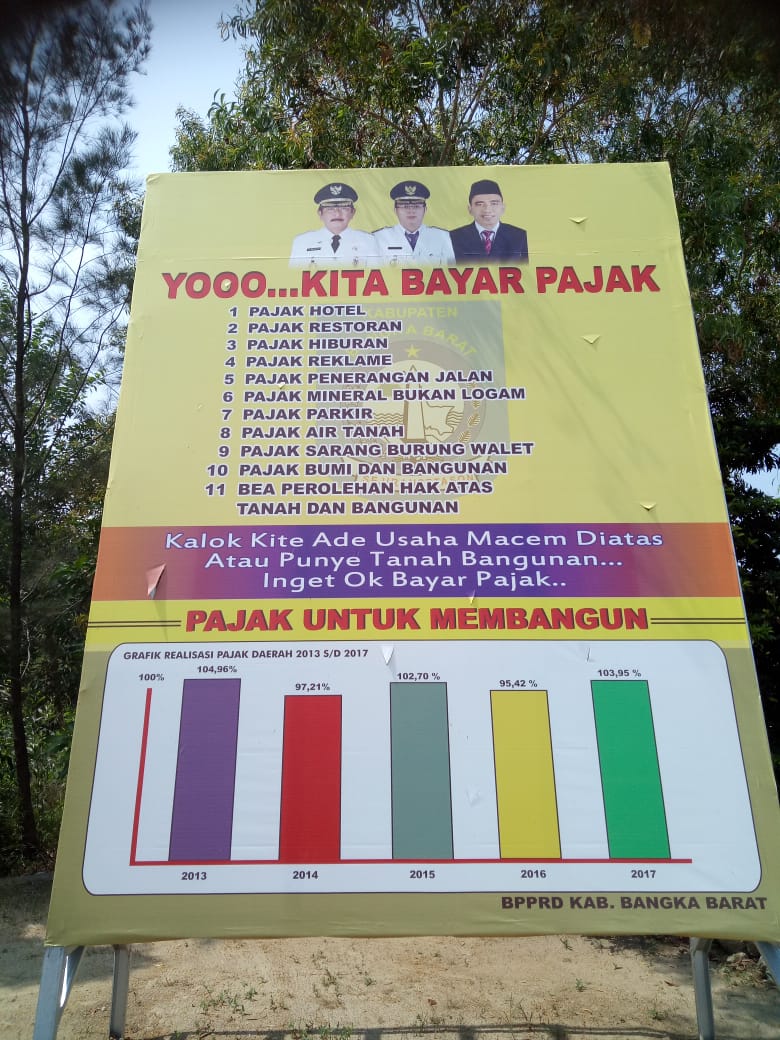 “Masih banyak masyarakat yang belum mengerti tentang pajak, kesadaran masyarakat disini sangat diperlukan, bila belum jelas tentang pajak dapat bertanya langsung ke kantor (Badan pengelolaan pajak dan Retribusi Daerah). Saat ini pemkab Bangka Barat melakukan upaya pendekatan dan kekeluargaan untuk mengajak masyarakat sadar membayar pajak, walaupun dalam Undang -undang bisa melakukan upaya hukum, hal itu belum dilakukan, “tutupnya.