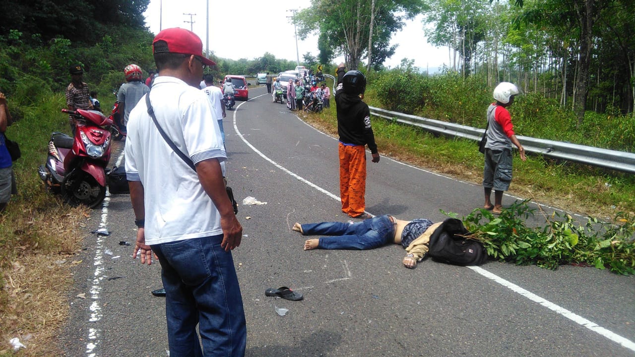 Saat itulah motor Rizal jatuh, dan saat bersamaan melintas sepeda motor Mio Soul warna merah yang dikendarai Nurkholis membonceng Setiawati melaju dari arah berlawanan, kemudian tabrakan tidak bisa dihidarkan,” jelas Kasatlantas