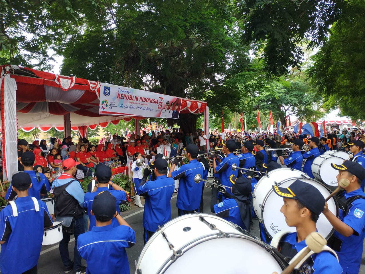 Muntok, Delapan merching band dari seluruh Bangka Barat ramaikan HUT RI ke 73. Acara dilaksanakan di jantung Kota Muntok,kembali dimeriahkan dengan pelaksanaan Kompetisi Marching Band 2018.