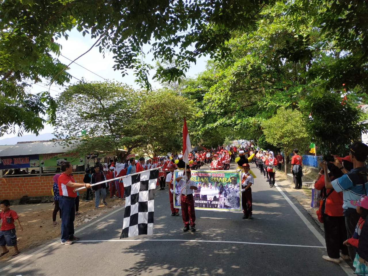 Penampilan SDN 1 Jebus mengawali kompetisi Marching Band Bangka Barat tahun 2018 yang diselenggarakan di Kota Muntok.