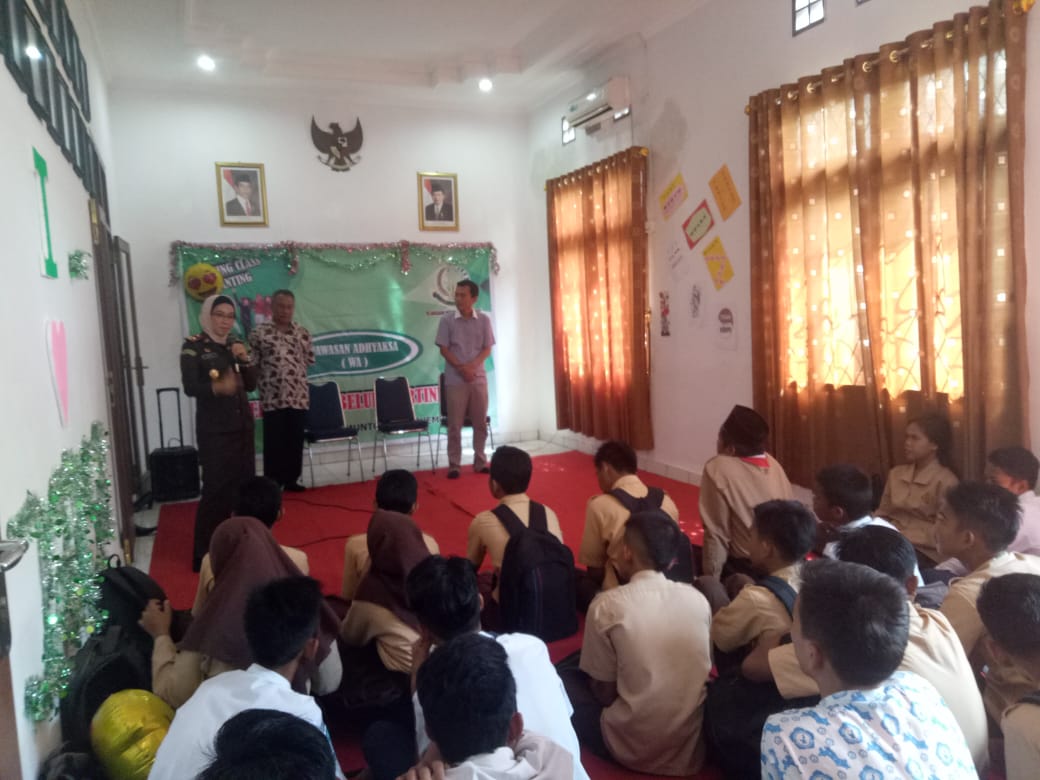 Muntok. Kejaksaan Negeri Bangka Barat melaksanakan kegiatan “Wawasan Adhyaksa, Aunting Class” kepada siswa-siswi Sekolah Menengah Pertama/Sederajat se-kabupaten Bangka Barat. Kegiatan dilaksanakan di ruang pertemuan kejaksaaan negeri Bangka Barat, langsung dipimpin oleh Kepala Kejari Bangka Barat Dr Neva Sari SH M.hum, didampinggi Kasie Inter Mario Nicholas SH, staff kejaksaan serta Dinas Dikpora dan guru pedamping, Kamis (1-11-2018)