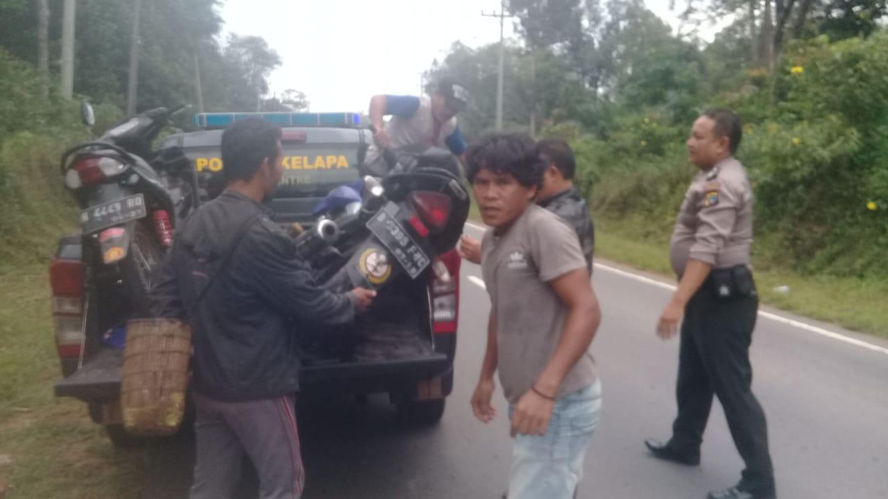 Kelapa. Diduga mengantuk, sepeda motor yang dikendarai Marianto (21th) warga Air Putih Muntok masuk jalur kanan, disaat berlawanan muncul kendaraan yang dikendarai Solomon Anesiyoris warga Duren Sawit Jakarta, tabrakan tak terelakkan. Laka Lantas terjadi di jalan Muntok – Pangkalpinang tepatnya di desa Kacung pukul 06.30 WIB Kamis 16-11-2018, mengakibatkan 1 orang korban (Mariyanto) meninggal dunia.