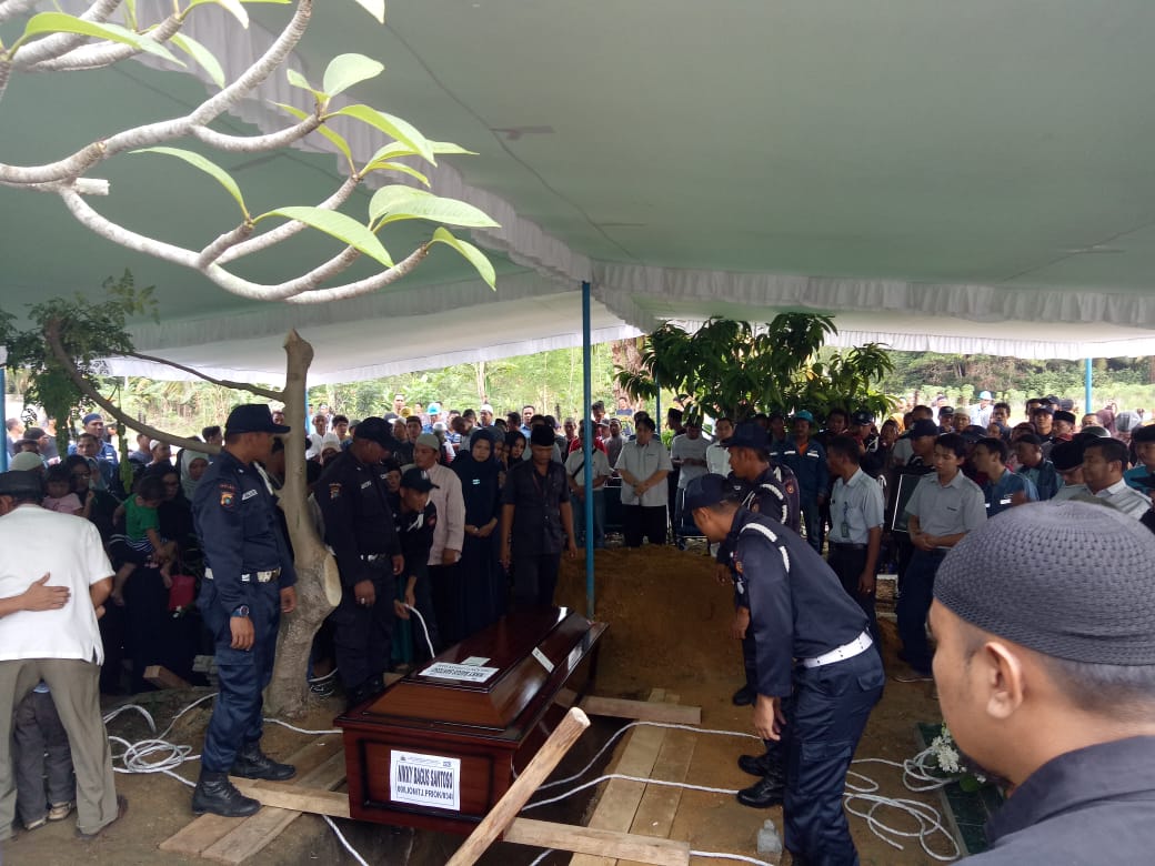 Tampak hadir mengantar kepergian Almarhum Dirut PT Timah Reza Pahlevi, beserta Direktur SDM Ir M. Rhizki, Ka Unmet Eko Zunianto, Camat Muntok Sukandi, serta sahabat serta rekan kerja korban.