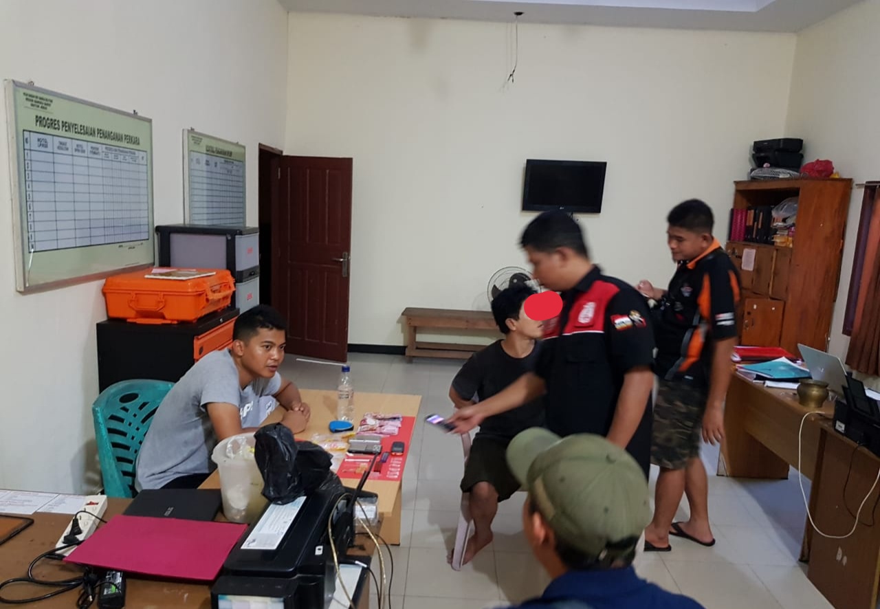 Berawal Anggota Unit Reskrim Polsek jebus mendapatkan informasi tentang adanya transaksi narkoba di salah satu kontrakan di Desa Air Kuang Parittiga, dari informasi tersebiut kemudian anggota unit Reskrim Polsek Jebus melakukan penyelidikan dan ditemukan seseorang laki-laki yang sedang duduk didalam rumah yang mencurigakan petugas, kemudian di lakukan penangkapan dan penggeledahan terhadap laki-laki tersebut di temukan 1 ( satu ) paket yg diduga sabu beserta bong alat hisap di dapur kontrakan pelaku, kemudian dilakukan penggeledahan di kamar pelaku di dalam lemari ditemukan 3 ( tiga ) paket yang diduga sabu yg terbungkus plastik bening dan ditemukan 2 ( dua ) unit timbangan digital di kamar pelaku dan ditemukan uang senilai Rp. 2.900.000 ( Dua juta sembilan ratus rupiah ) yang disimpan dibawah lipatan baju di dalam lemari yang diduga uang hasil penjualan sabu, 3 ( tiga ) buah sekop plastik, 3( tiga ) buah pirek, 2 ( dua ) buah korek api gas.