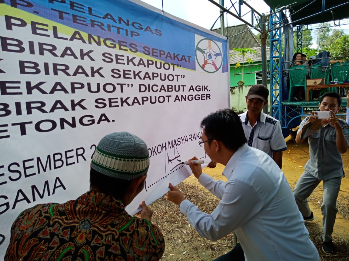 SIMPANG TERITIP – Masyarakat desa Pelangas kevamatan Simpang Teritip berjanji tidak buang air besar sembarangan. Hal tersebut dilaksanakan dalam bentuk ikrar/janji dalam acara deklarasi Desa Pelangas Kecamatan Simpang Teritip sebagai Desa Open Defecation Free (ODF) atau tidak Buang Air Besar (BAB) sembarangan Rabu (5/12/2018) di kantor Desa setempat.