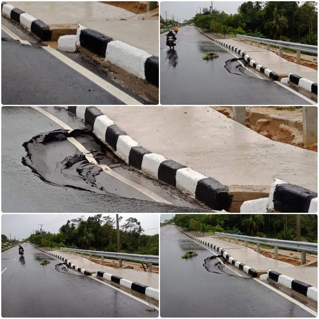 “Penyebab kerusakan jalan selain karena hujan yang terjadi mulai tadi malam, mungkin karena belum maksimal dalam pemadatan yang menyebabkan penurunan di badan aspal,”jelas Suharli