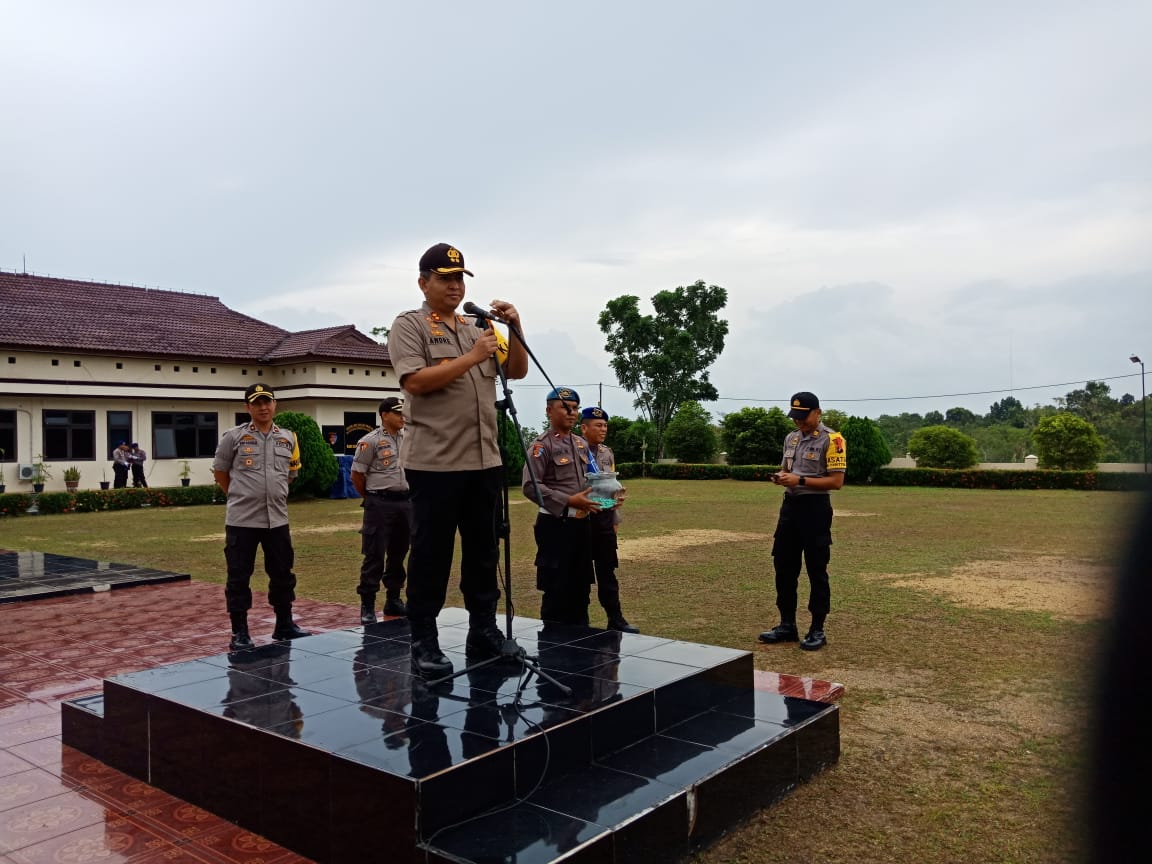 Dalam Upacara Hari Kesadaran Nasional yang menjadi rutinitas satu bulan sekali Polres Bangka Barat, Kapolres Bangka Barat AKBP Firman Andreanto, S.H, S.IK, M,Si menyerahkan langsung Hadiah Umroh Gratis kepada Briptu Hasanuddin Kosira. Senin (21/1/2019)