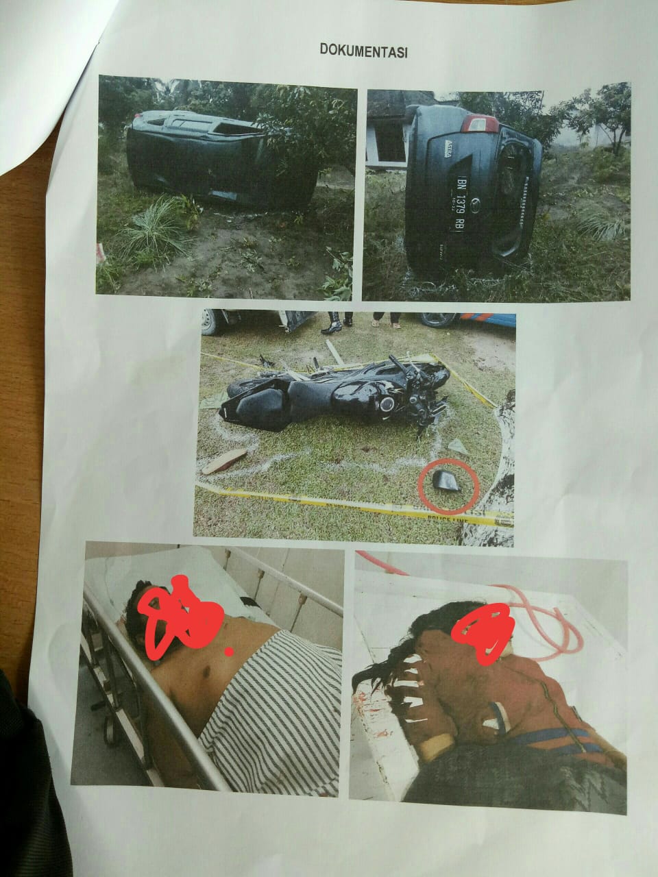 Sewaktu di jalan EL dan NS yang berboncengan mengendarai sepeda motor honda CBR menjelang pulang bertemu dengan AM dan RI, karena tersulut emosi dan akhirnya mobil Daihatsu Zigra yang dikemudikan AM dengan sengaja menambrak motor yang dikemudikan EL dan NS, lalu terjadilah benturan keras mengakibat mobil terbalik, sedangkan kedua korban terjatuh dari motor, korban NS (istri) meninggal di TKP, sedangkan EL luka parah. AM dan RI saat itu langsung keluar dari mobil langsung melarikan diri,”jelas Hafiz