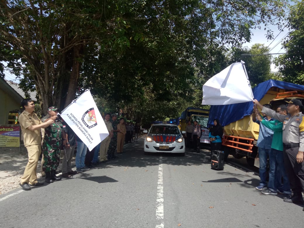 Setelah memusnahkan surat suara, dilanjutkan dengan pelepasan logistik Pemilu ke TPS-TPS di lokasi pencoblosan