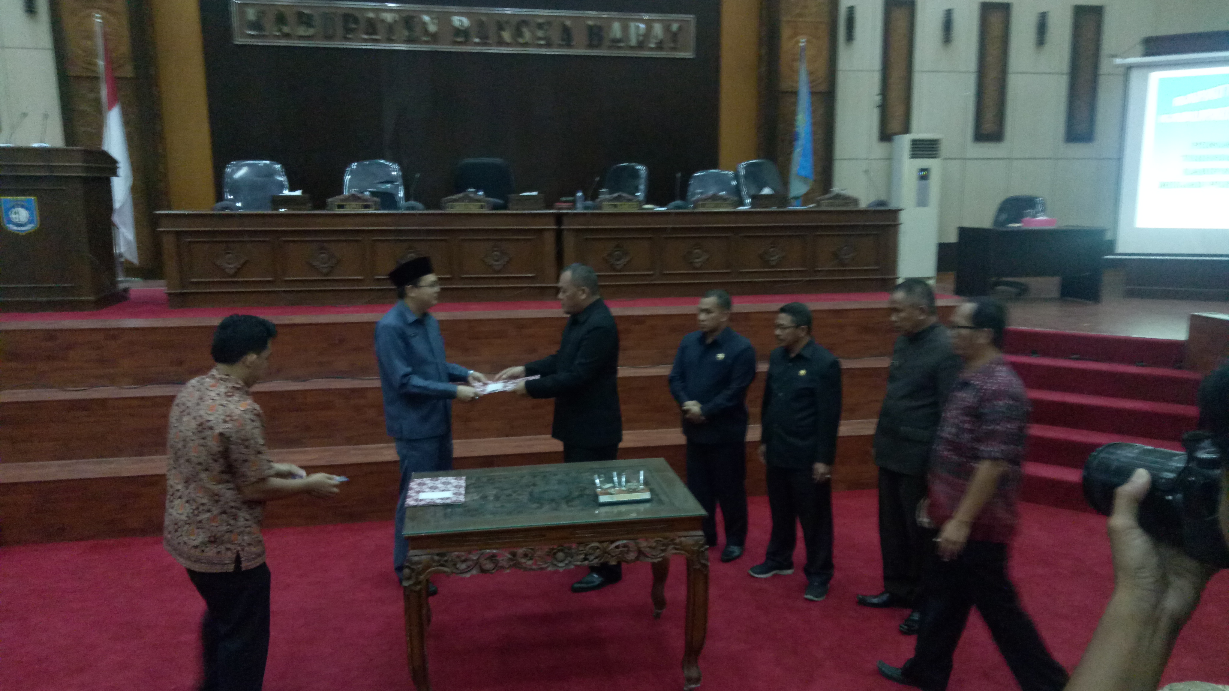 Muntok. Dewan Perwakilan Rakyat Daerah (DPRD) Bangka Barat bersama pemda Bangka Barat sepakat mengesahkan tiga rancangan Peraturan Daerah menjadi Peraturan Daerah Kabupaten Bangka Barat dalam rapat paripurna yang digelar di DPRD Kabupaten Bangka Barat, Kamis (11/7/2019).