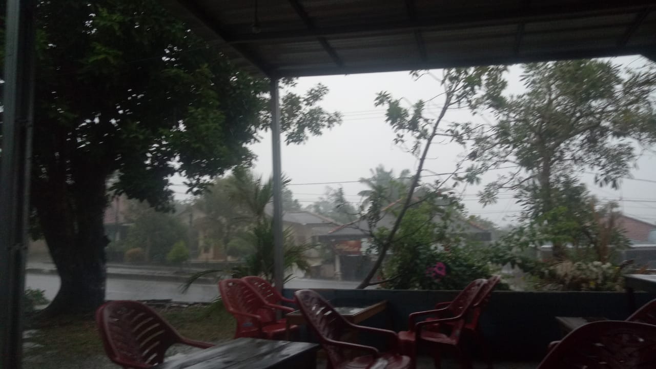 Pada pukul 13:30 WIB, langit mulai hitam, mendungpun menyelimuti seluruh bumi Sejiran Setason, pada jam 14:0 hujanpun mengguyur dengan deras membasahi bumi, dan mulai reda pada jam 16:00 WIB.