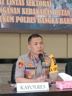 Kapolres Bangka Barat AKBP Muhammad Adenan A.S, S.H. S.IK, saat Gelar Rapat Lintas Sektoral Penanganan Karhutla di Polres Bangka Barat