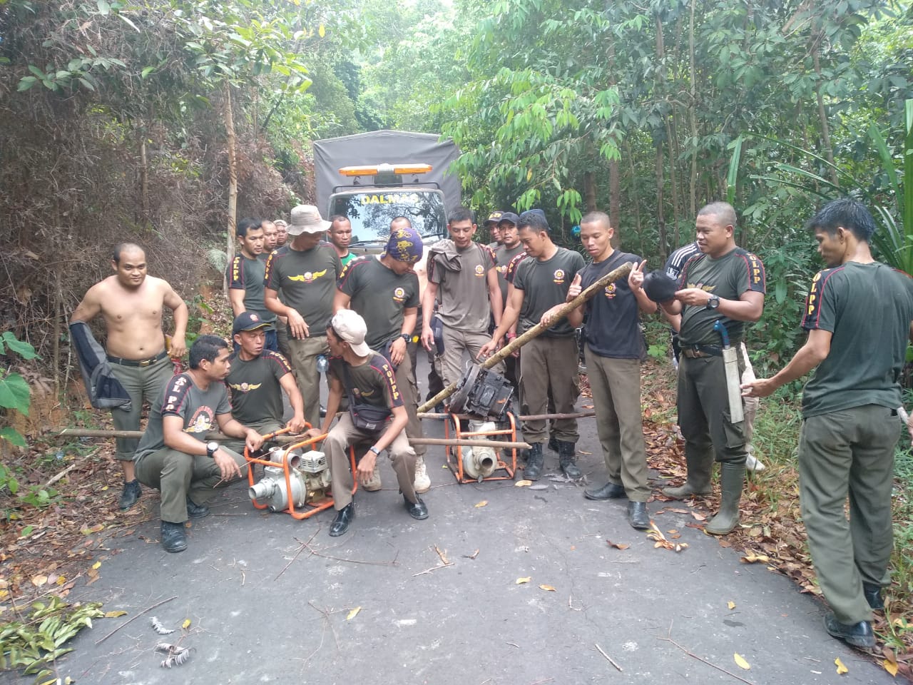 MUNTOK. SatpolPP Bangka Barat harus berjibaku melawan cuaca alam Menbing,masuk hutan keluar hutan untuk melakukan razia TI dan aktivitas ilegal lainnya di kawasan hutan Konservasi Menumbing. Perjuangan berat pantang menyerah menegakkan Perda dilakukan SatPolPP Bangka Barat, tidak mengenal cuaca panas dan hujan, meskipun harus berendam di kolong galian penambangan ilegal untuk mendapatkan barang bukti (BB) untuk diamankan.