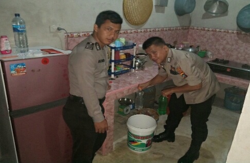 kemudian dilakukan penggeledahan dirumahnya dan kemudian ditemukan barang bukti berupa 2 botol ukuran 1,5 liter berisi minuman keras jenis arak dan 4 kantong plastik yang berisi minuman keras jenis arak siap edar yang disimpan dibawah meja dapur rumahnya didalam ember berwarna putih,”jelas Kapolsek