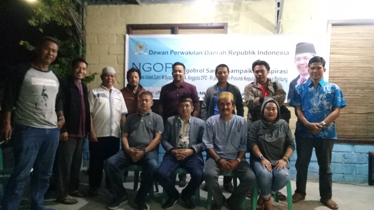 MUNTOK. Setelah sukses meluncurkan program “Ngopi” ( Ngobrol Santai Sampaikan Aspirasi) di Pangkalpinang. Senator Ustad Zuhri M. Sadzili kembali “Ngopi” bersama warga Muntok. Acara Ngopi digelar di “Cafe Katiga” Muntok Bangka Barat, Sabtu (26/10/2019) malam.