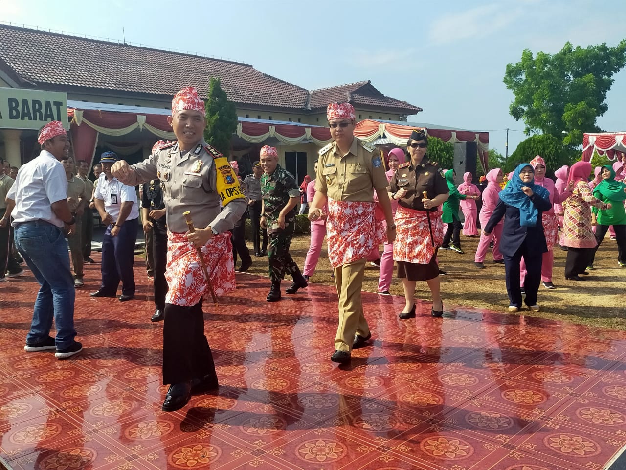 Kapolres Bangka Barat, AKBP Muhammad Adenan, Bupati Markus, Kajari Helena Oktavianne, unsur Forkopimda serta segenap Kepala OPD Pemkab Bangka Barat turut bersenam ria dalam pemanasan sebagai menu pembuka acara ini.