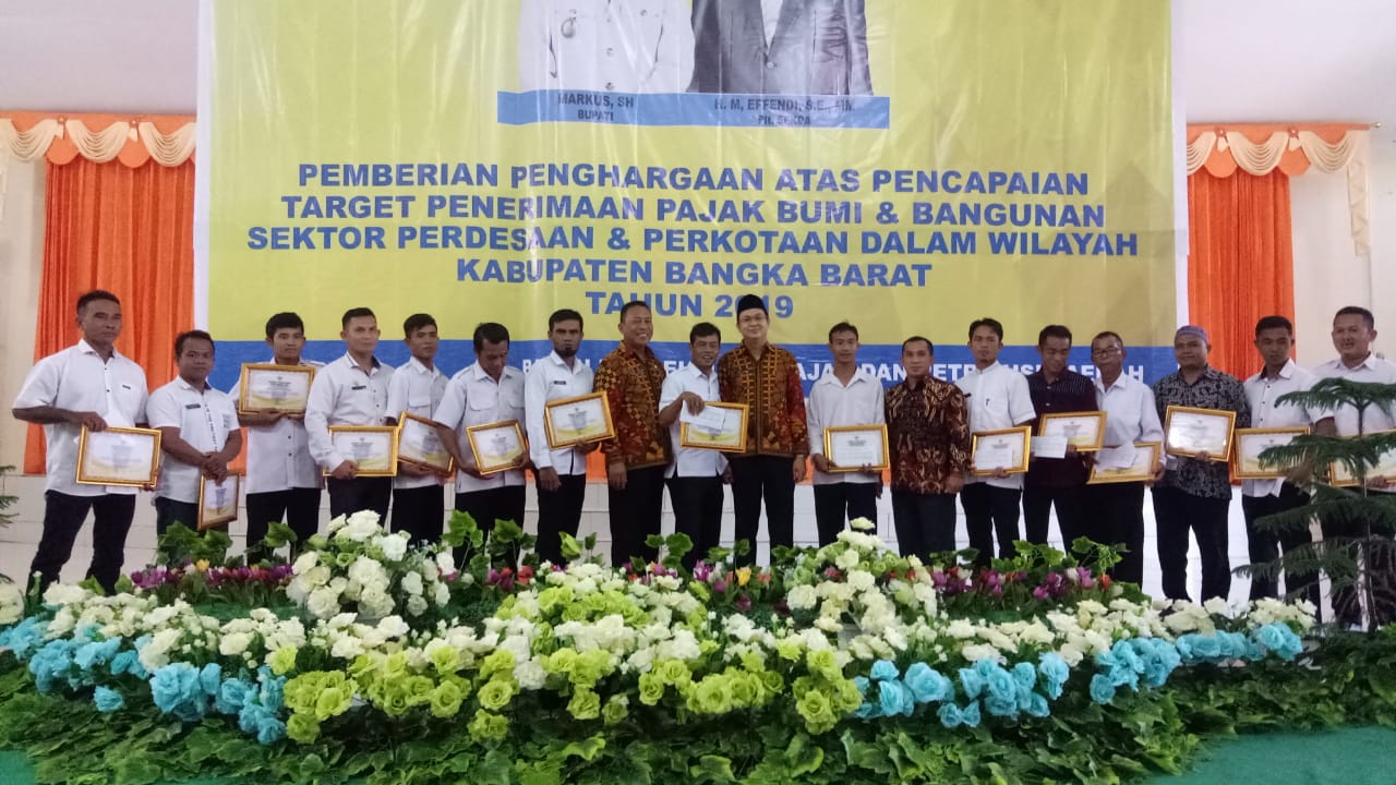 MUNTOK. Target Penerimaan Pajak Bumi dan Bangunan (PBB) sektor Pedesaan dan Perkotaan (P2) tidak mencapai target penerimaan. Hal itu disampaikan Bupati Bangka Barat Markus SH, saat memberikan penghargaan atas pencapaian target penerimaan pajak PBB sektor pedesaan dan perkotaan dalam wilayah Bangka Barat kepada Desa dan Kelurahan Bangka Barat yang digelar di Gedung Graha Aparatur Pemkab Bangka Barat, Rabu ( 4/12/2019 ) pagi.