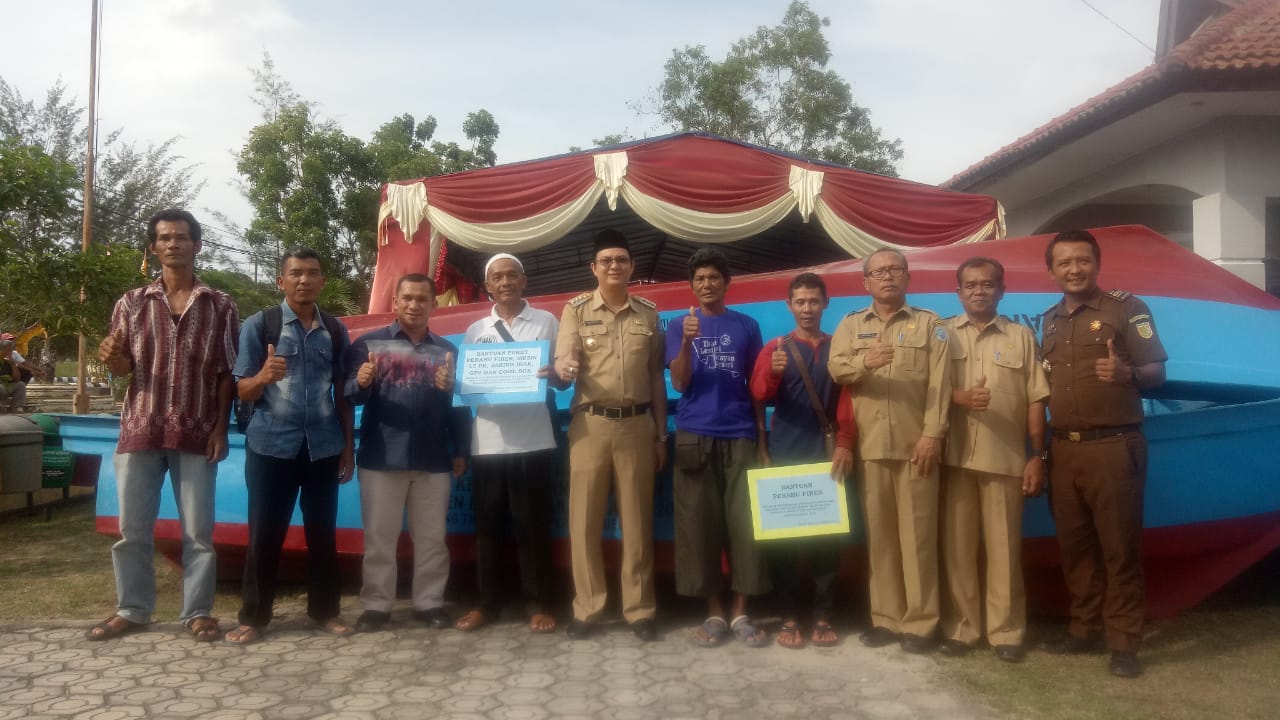 MUNTOK. Kelompok Nelayan di Bangka Barat menerima bantuan perahu fiber, benih ikan, pakan, mesin, dan alat tangkap dari Dinas Kelautan dan Perikanan (DKP) Kabupaten Bangka Barat , Senin (23/12/2019) sore