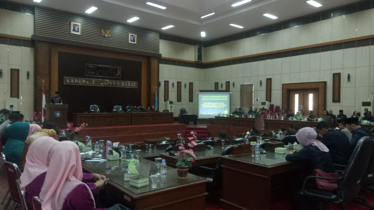 Rapat paripurna dipimpin ketua DPRD Bangka Barat H Badri Syamsu, dihadiri wakil ketua 1 H Okrorazsari, wakil ketua II miyuni, Bupati Markus, Kapolres AKBP M Adenan, Dandim 0431 Agung, ketua penggerak PKK Evi Astura, ketua KPU Pardi, kepala OPD, asisten dan staf ahli dan anggota DPRD Bangka Barat.