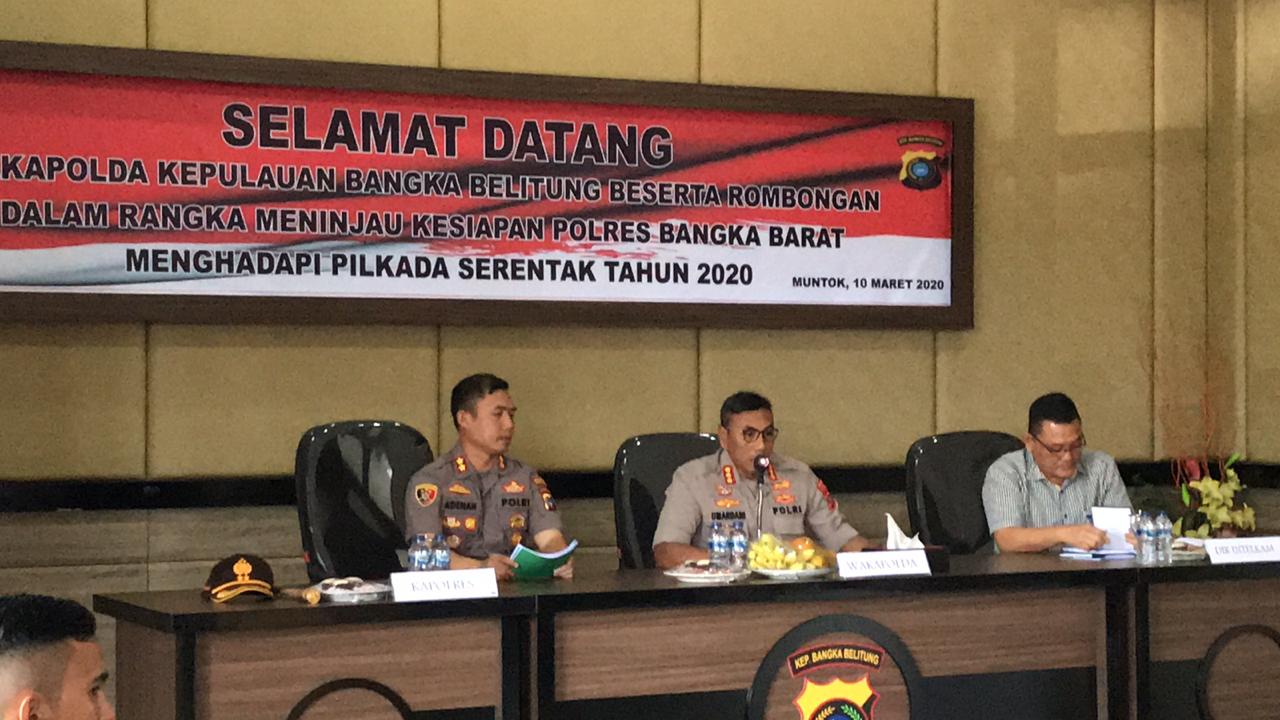MUNTOK. Wakapolda Bangka Belitung Kombes Pol Umardani meminta personel Polres Bangka Barat menjaga netralitas di Pilkada Bangka Barat 2020 mendatang. Hal itu disanpaikkan Wakapolda dalam pertemuaan dengan jajaran polres Bangka Barat di Gedung Catur Prasetya Polres Bangka Barat. Selasa (10/3/2020)