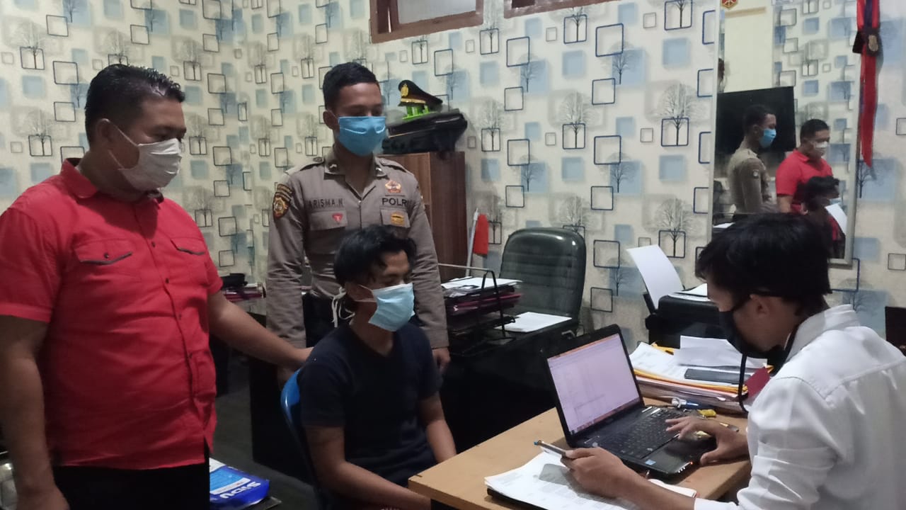 Kapolres Bangka Barat AKBP Dr. Muhammad Adenan A.S, S.H. S.IK, MH menjelaskan pelaku membalut ponsel tersebut dibalik kain pel yang diletakkan dalam toilet. Senin (04/05/2020)
