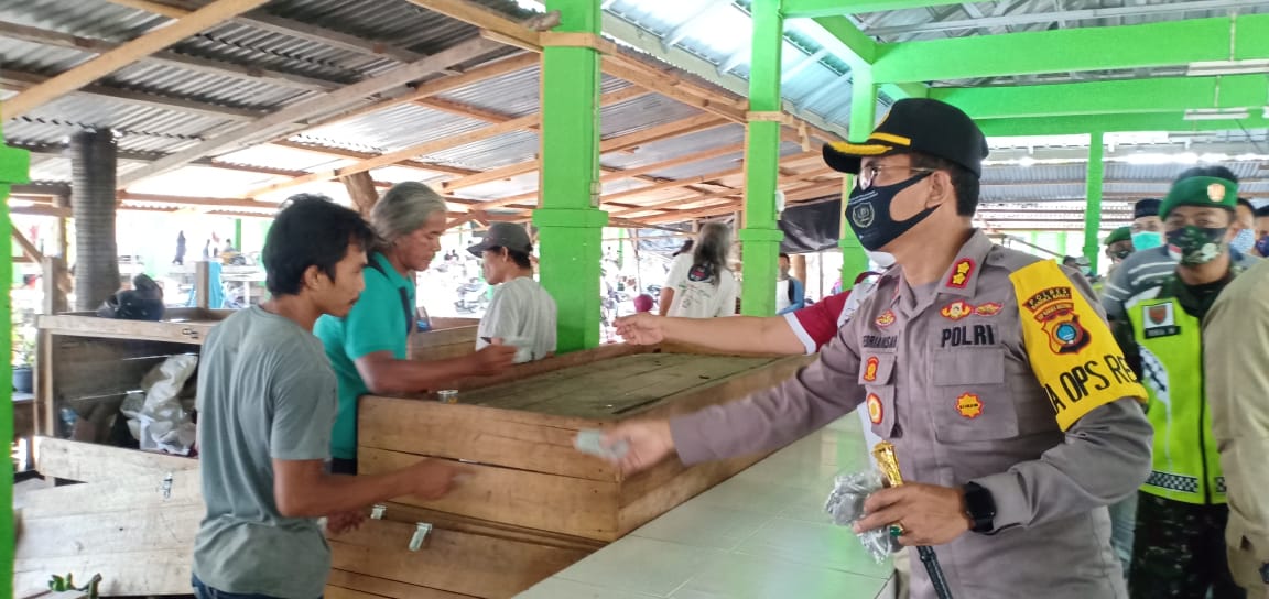 Bupati Markus bersama Kapolres dan tim Satgas Pangan memantau stok beras.Pantauan di lapangan, Bupati Markus dan Kapolres AKBP Fedriansah dan Tim satgas Pangan tampak menyusuri lapak- lapak pasar dan berbincang tentang harga dagangan para pedagang, termasuk membagikan masker untuk pedagang dan pengunjung yang tidak mengenakan masker.