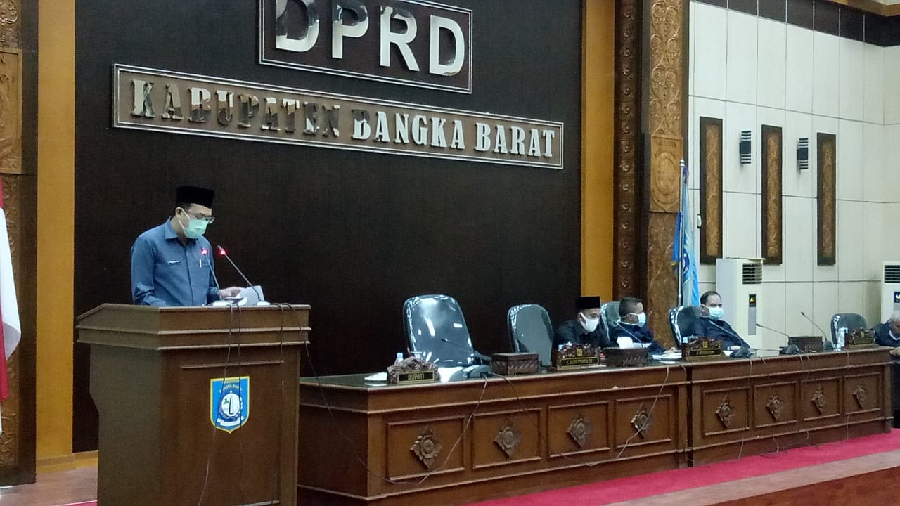 Bupati Bangka Barat Markus SH menyampaikan laporan pertanggung jawaban. APBD tahun 2019 dihadapan peserta rapat paripurna yang mengikuti jalannya acara.