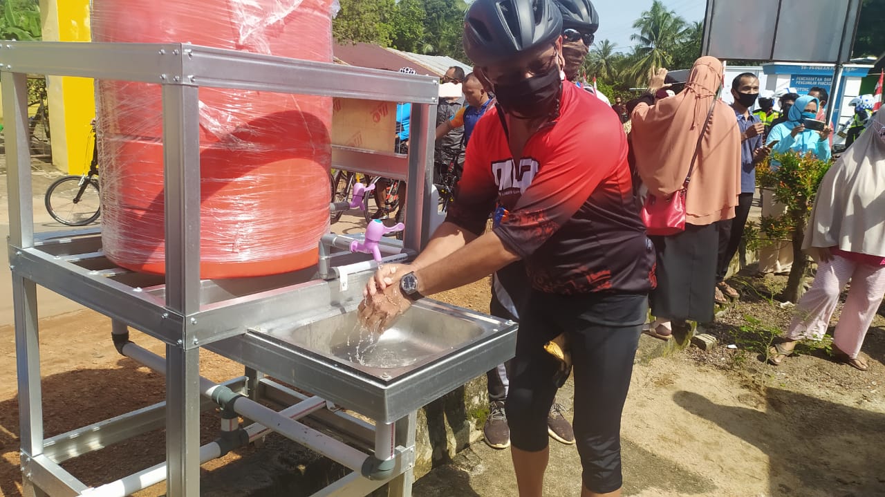 Gubernur Erzaldi Rosman dan rombongan diwajibkan harus melaksanakan protokol kesehatan seperti mencuci tangan menggunakan masker dan pengecekan suhu tubuh
