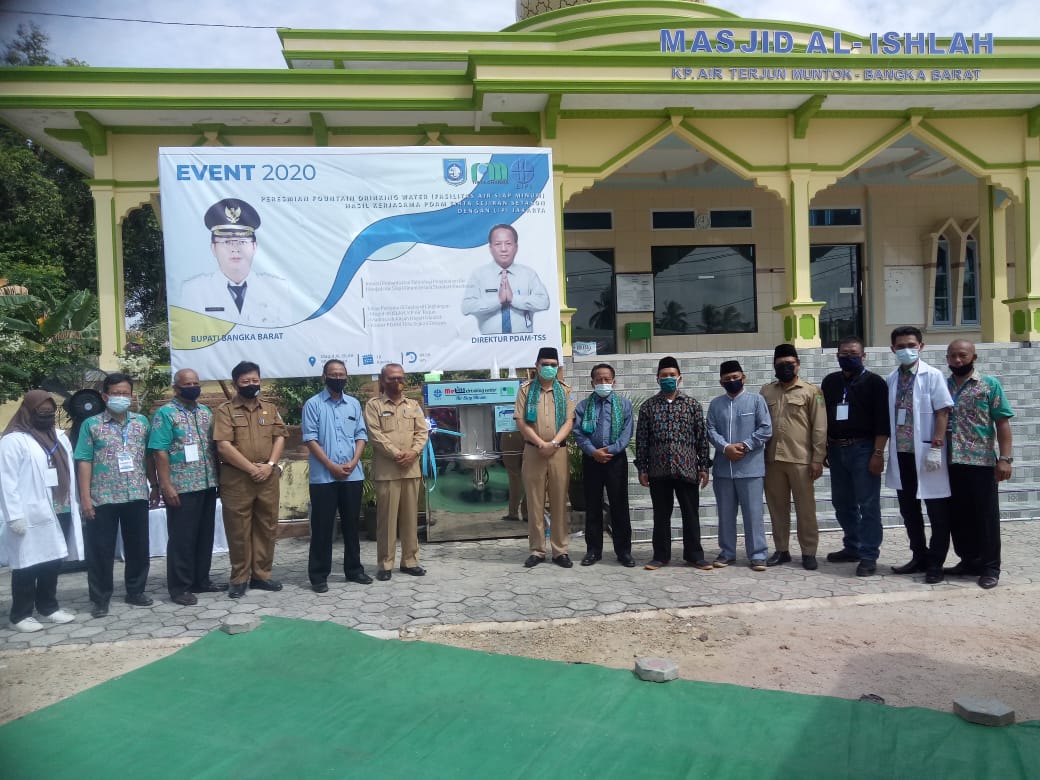 MUNTOK. Perusahaan Daerah Air Minum (PDAM)Tirta Sejiran Setason (TSS), Bangka Barat, meresmikan penggunaan teknolog bernama Fountain Drinking Water (Air Mancur Siap Minum), yang merupakan inovasi PDAM bekerjasama Lembaga Ilmu Pengetahuan Indonesia (LIPI). Bupati Markus meresmikan penggunaan Fountain Drinking Water, denggan pengguntingan pita di Masjid Al Islah, Kp Puput Muntok, Selasa (18/8/2020)