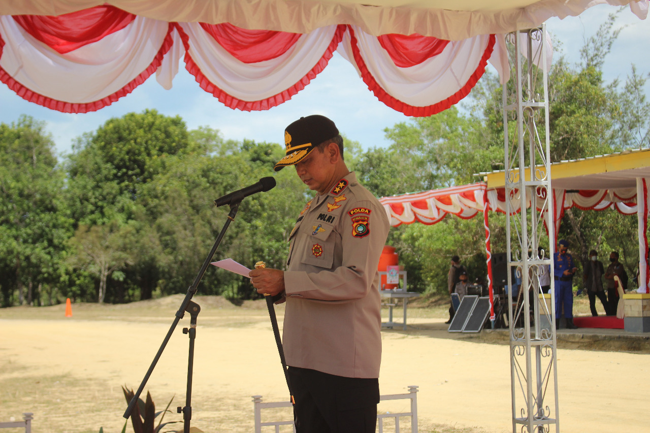 MUNTOK. Gubernur Erzaldi Rosman bersama Kapolda Kepulauan Bangka Belitung Irjen Pol Anang Syarif Hidayat menghadiri kegiatan apel gelar pasukan dan simulasi Sistem Pengamanan Kota (Sispamkota) Operasi Mantap Praja 2020 Polres Bangka Barat di Lapangan atletik Bangka Barat, Rabu (16/09/2020).