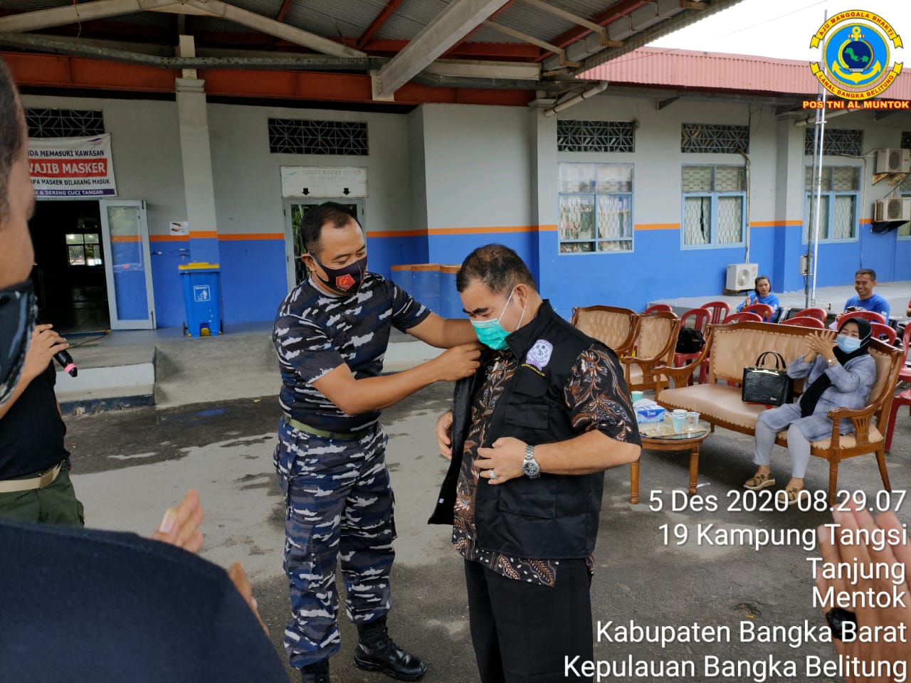 MUNTOK. Pos TNI AL Muntok Lanal Bangka Belitung bersama tim gugus tugas covid 19 Bangka Barat melaksanakan acara Olahraga senam Bersama dalam rangka melepas Pjs. Bupati Bangka Barat Sahirman Jumli yang telah berakhir massa tugasnya. Bertempat di Kantor Pelabuhan ASDP Tanjung.Kalian Muntok Bangka Barat. Sabtu (5/12/ 2020)