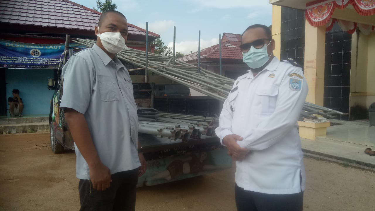 BANGKA BARAT — PT Timah Tbk melalui CSR merespon cepat keinginan Warga dusun dua, Desa Belo Laut, Kecamatan Muntok, Bangka Barat untuk mendapatkan tenda pemakaman sebanyak dua unit, di Kantor desa Belo Laut Rabu (23/12/2020).