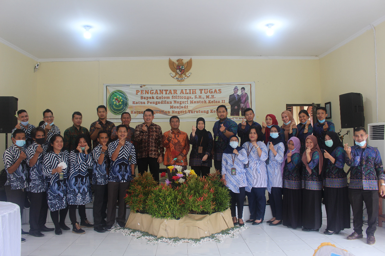 MUNTOK. Pengadilan Negeri Mentok menyelenggarakan Acara Pengantar Alih Tugas Ketua Pengadilan Negeri Mentok Bapak Golom Silitonga, S.H., M.H., menjadi Ketua Pengadilan Negeri Tarutung. Selasa, 19 Januari 2021.