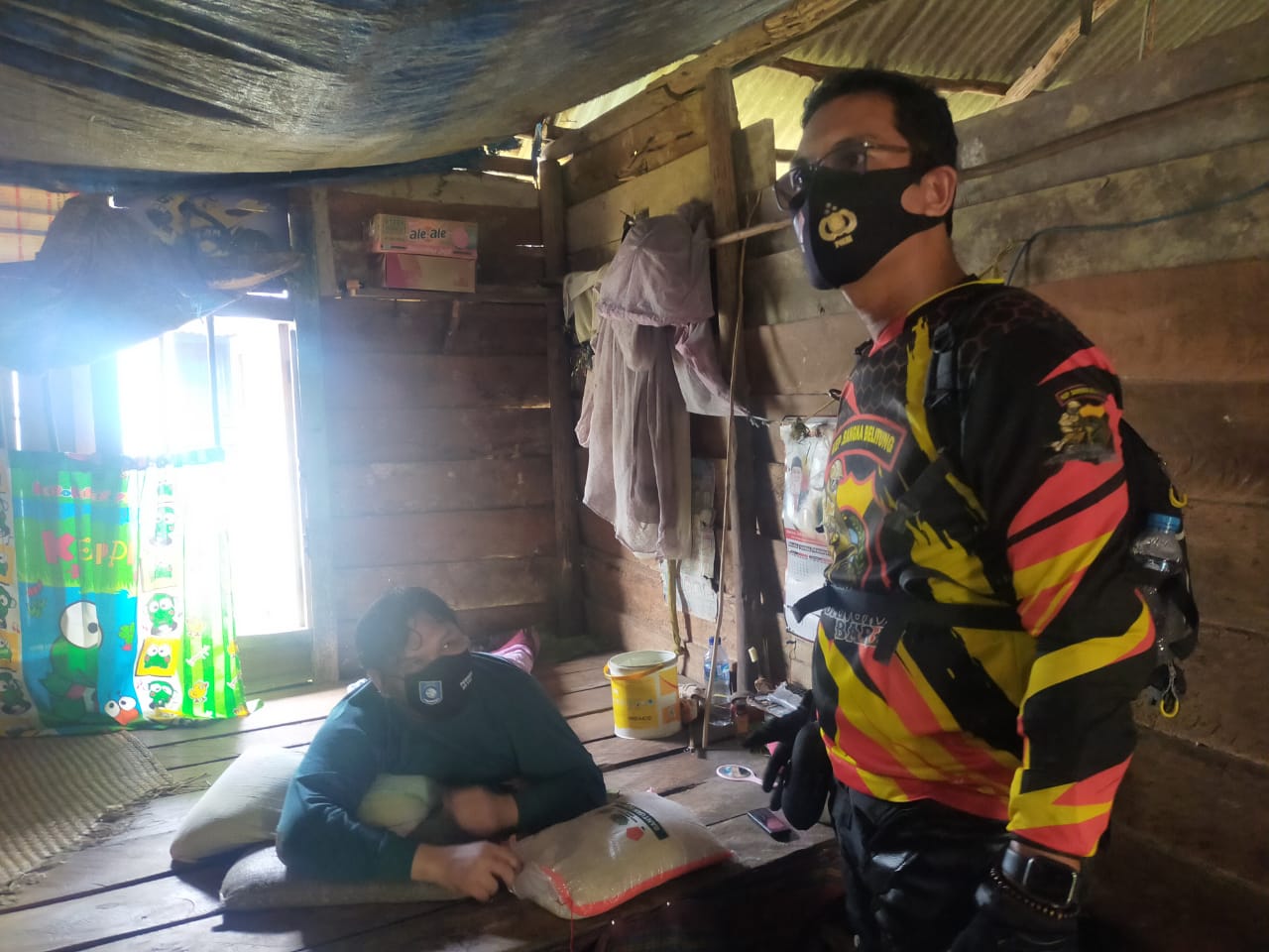 Kapolres Bangka Barat membagikan sembako dari rumah ke rumah dan kegiatan ini pun sampai kepada saudara Junaidi zakarsi (35) warga desa Simpang Yul kecamatan Tempilang Kab. Bangka Barat telah mengidap lumpuh selama12 tahun akibat kecelakaan saat pergi bekerja, yang tinggal bersama keluarganya mengucapkan atas perhatiannya dari Kapolres Bangka Barat.