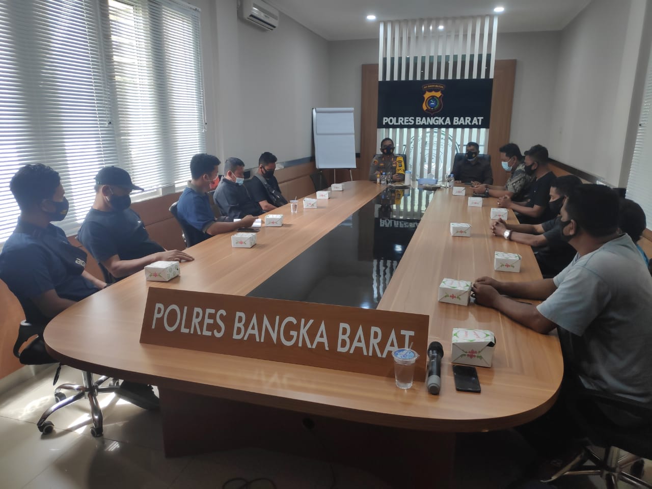 pertemuan Panitia KIP Belo Laut dengan Kapolres Bangka Barat terkait hasil kegiatan operasional penambangan KIP di Perairan Desa Belo Laut di Ruang Aula Drs. Jend. Muhammad Hassan Polres Bangka Barat. Rabu (03/02/2021).