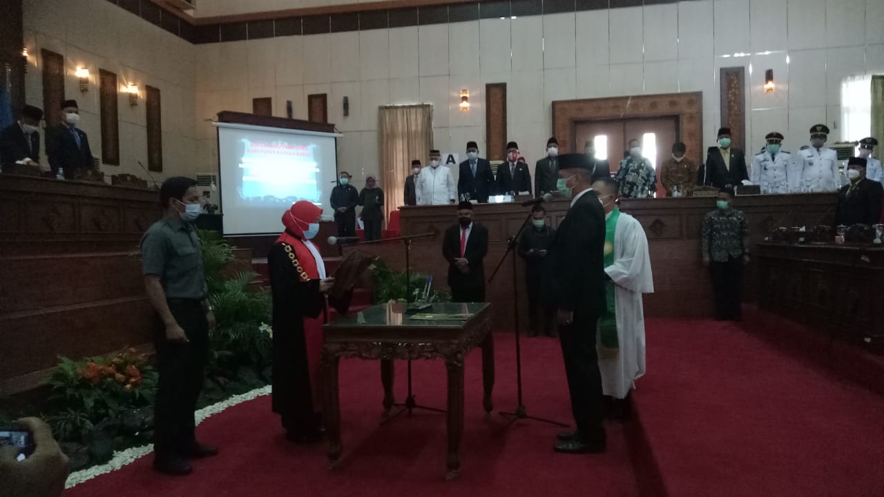 MUNTOK. Marudur Saragih SE resmi menjabat sebagai Ketua DPRD Bangka Barat sisa masa jabatan 2019 -2024. Pengambilan Sumpah Janji dipimpin oleh Ketua Pengadilan Negeri Muntok Erica Mardaleni SH, dalam rapat Paripurna di gedung Mahligai Betason II DPRD Bangka Barat. Kamis (11/2/2021)