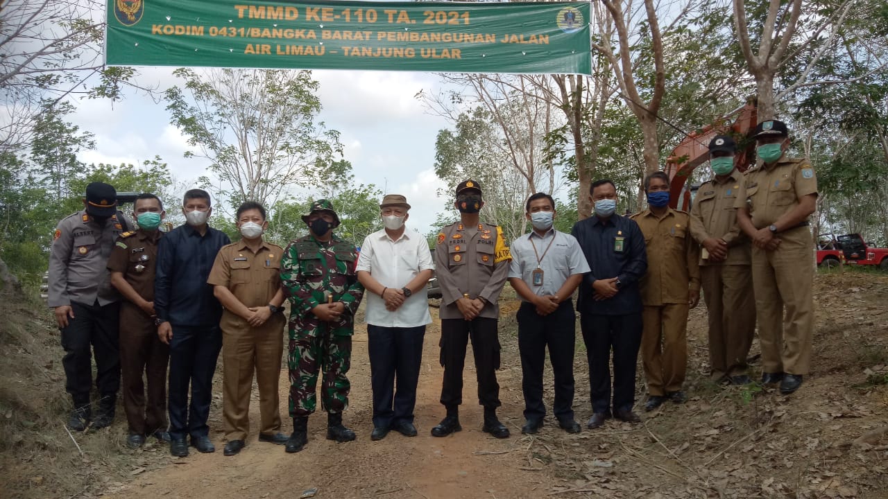MUNTOK. Komandan Kodim (DANDIM) 0431 Bangka Barat Letkol Inf Agung Wahyu Perkasa secara resmi mmbuka ipembukaan jalan sepanjang 13,8 yang akan menghubungkan desa Air Limau dan Kawasan Ekonomi KhususTanjung Ular. Kegiatan diwujudkan dalam TMMD ke 110, Senin (15/2/2021)