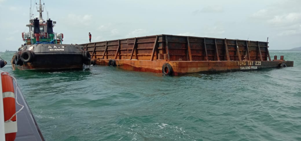 “Pada tanggal 14 Februari 2020 pukul 15.00 Pers. Satpolair mendapatkan Informasi dari Nelayan Muntok an.Yudi bahwa ada kapal yang mengalami kebocoran di Perairan Karang aji, kemudian segera kapal Patroli 2701/C2 menindak lanjuti laporan tersebut, adapun identitas kapal TB.AA3 menggandeng TK. Yongtat dengan nahkoda Baharudin asal Jambi Tujuan Tanjung Priuk Jakarta,”jelas Candra
