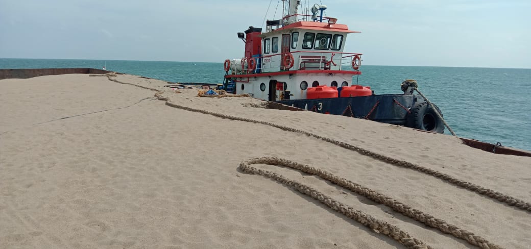 Kasat Polair Polres Bangka Barat AKP Chandra Wijaya seizin Kapolres Bangka Barat membenarkan kejadian tersebut Kapal TB AA3 menggandeng TK.Younglat yang terjadi kebocoran Tongkang muatan pasir di Perairan Karang Aji Mentok Bangka Barat