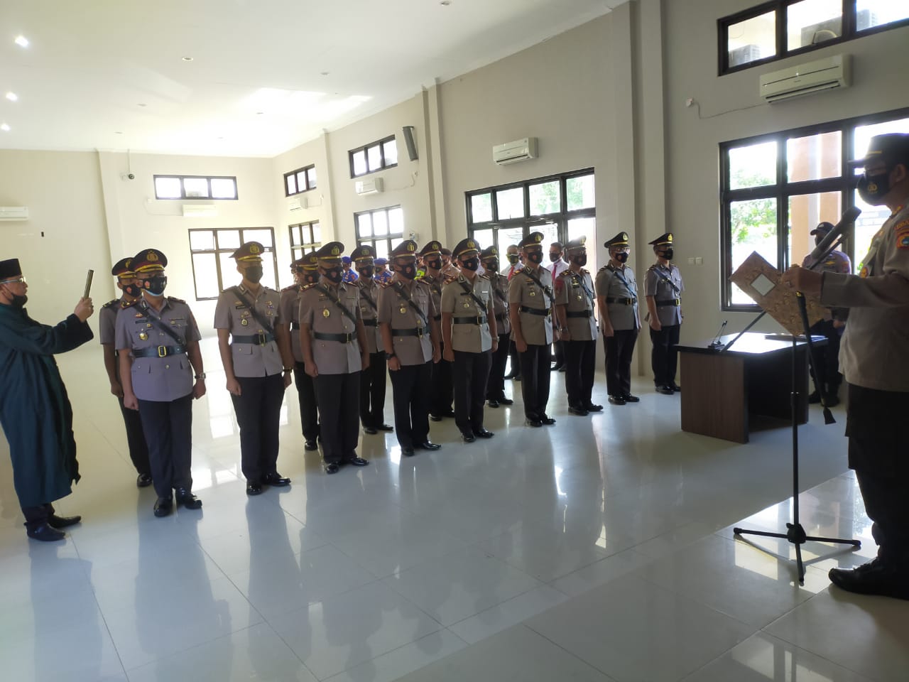 MUNTOK. Polres Bangka Barat melaksanakan kegiatan Upacara Sertijab beberapa PJU Polres Bangka Barat bertempat di gedung Catur Prasetya Polres Bangka Barat. Kamis (03/06/2021)
