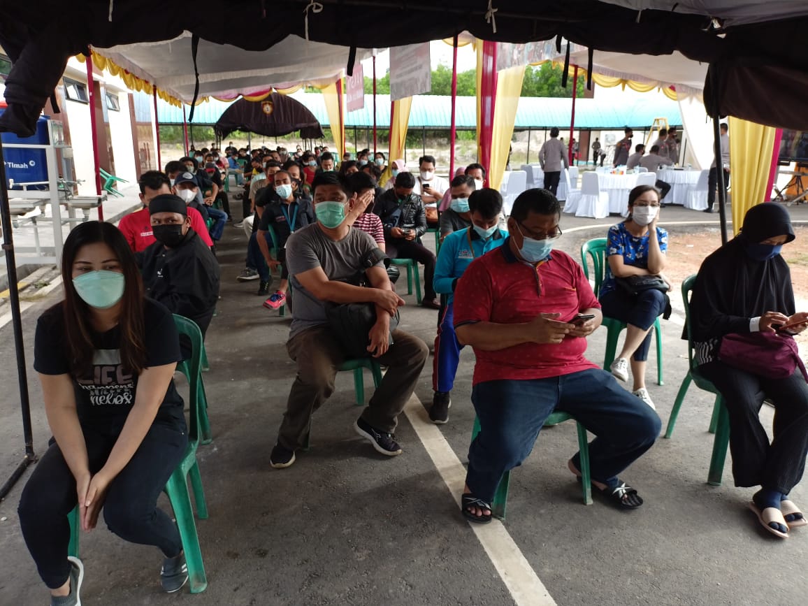 Kabid Humas mengatakan Vaksinasi Covid-19 Massal yang digelar oleh pihaknya ini dilaksanakan diberbagai tempat yakni di Rumkit Bhayangkara, Gereja GBI Bacang dan Masjid Salsabilah Jalan Selan samping Asrama Polisi termasuk di Polres jajaran.