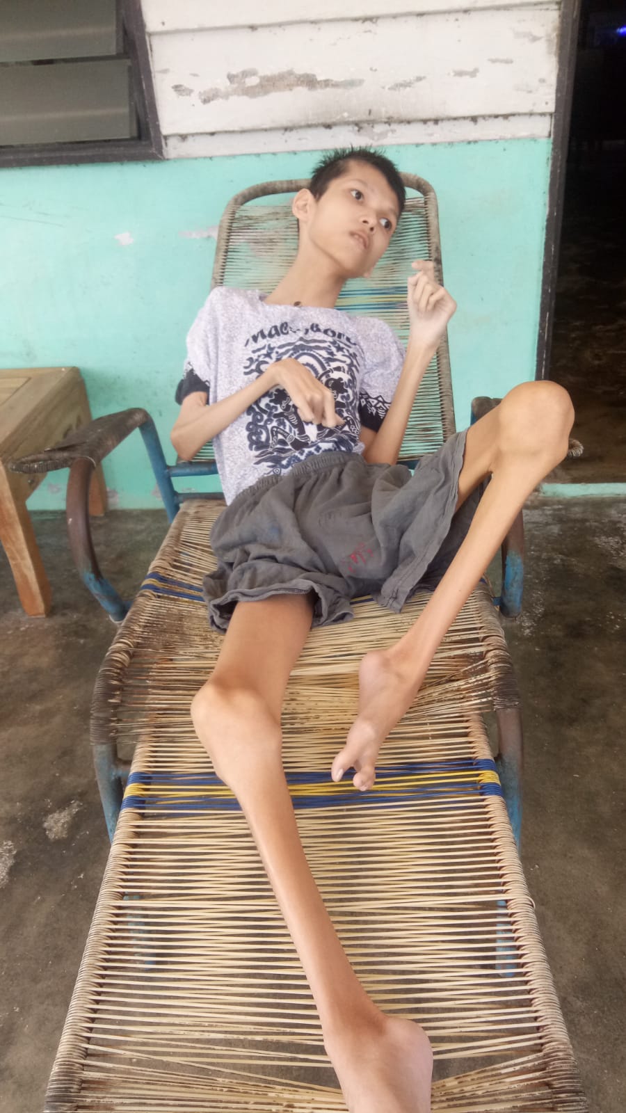“Di usia 1 tahun Kevin menderita kejang, lalu tidak bisa apa-apa , kata dokter terkena syaraf motorik. Jadi harus minum obat kejang dan syaraf setiap hari, pagi, siang dan malam,sampai sekarang usia 17 tahun,”ungkap Salbiah