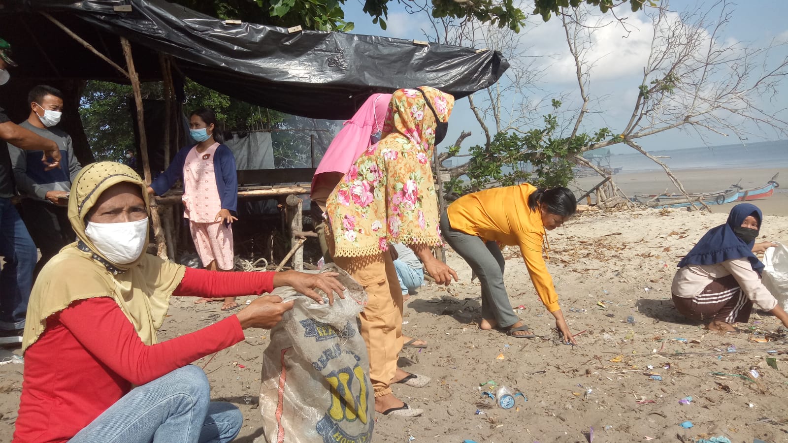 Salah satu masyarakat terlibat Aksi Bakti Sosial Bersih pantai, Sumiati warga dusun Selindung Jungku mengaku senang dengan kegiatan, ia bersama peserta lain berbaur membersihkan sampah di pantai.