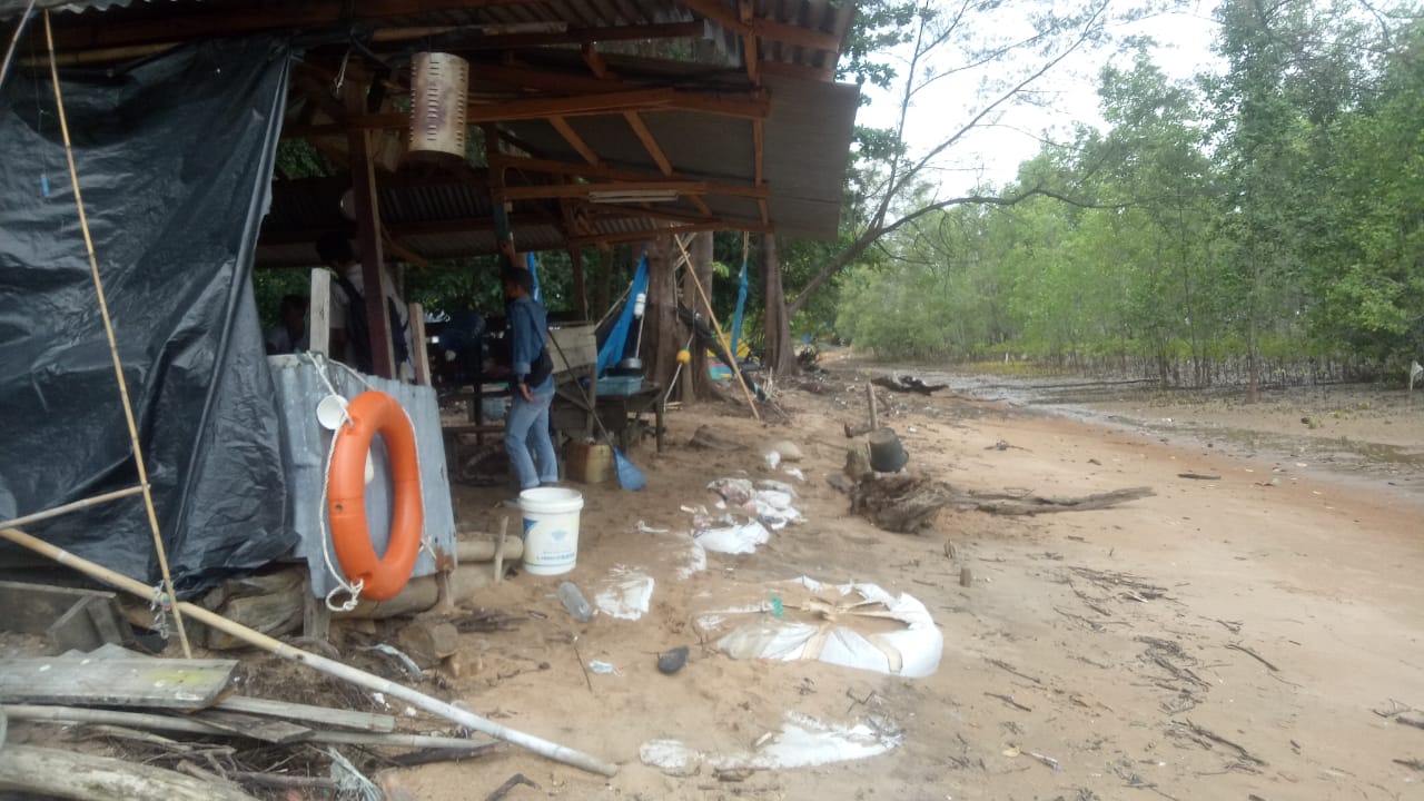 “Kalau terjadi pasang besar gelombang laut sudah memasuki pondok nelayan KUB Jaya Mandiri. Hal itu menyebabkan abrasi bibir pantai. Selama ini dibantu dengan karung karung berisi pasir untuk menahan pemecah gelombong, namun tidak maksimal, “terang Kasdi